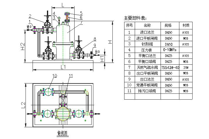 天然氣撬裝疏水閥技術(shù)參數(shù)及外形尺寸: